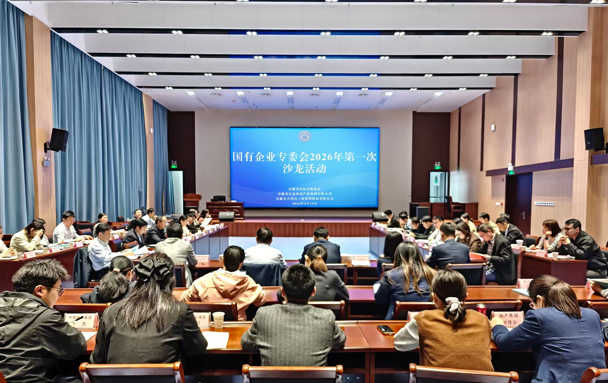 4月15日,省招標采購協會國有企業專委會2026年第一次專題研討會在安徽環境科技集團股份有限公司召開。本次研討會由安徽省招標采購協會主辦、國企專委會第九屆輪值主任單位安徽省生態環境產業集團有限公司承辦、安徽安天利信工程管理股份有限公司協辦。安徽省生態環境產業集團有限公司黨委委員、副總經理王奇,安徽省招標采購協會秘書長胡美玲出席會議,安徽省生態環境產業集團有限公司運營部部長、招采中心主任偶自如主持會議。省招協國有企業專委會部分成員單位代表共50余人參會。