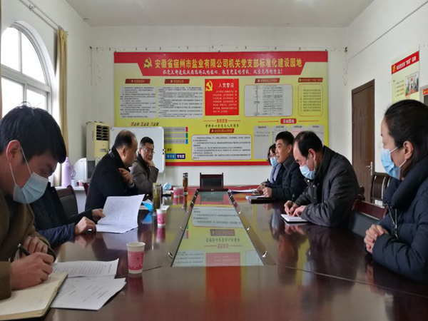 宿州市鹽業公司總支書記、經理陳勇匯報了宿州鹽業基本情況和各項工作。祖鈞公對宿州市鹽業改革后取得的各項成績予以了高度肯定。他指出,宿州鹽業要繼續做好2021年食鹽供應工作,做好食鹽儲備的同時抓好疫情防護。他還要求經信局要協調相關部門,加大市場監管力度,齊抓共管,共同維護好鹽業市場,讓市民吃上放心食鹽。
