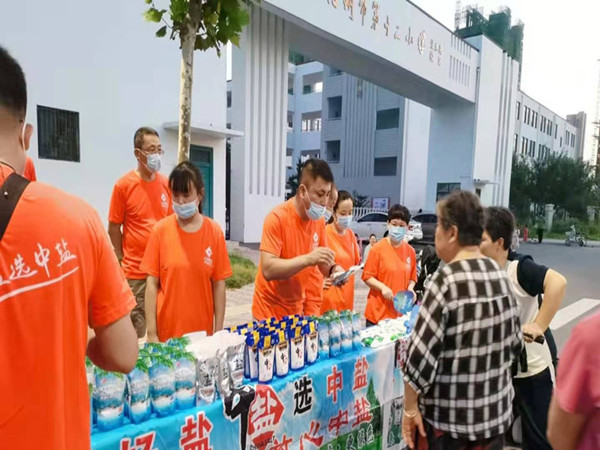 當晚7點,宿州市第十二小學門前人頭攢動,現場展示臺陳列著中鹽系列產品,宣傳人員向圍觀群眾宣傳食鹽基礎知識、介紹各類鹽品,引導消費者樹立健康、品質的生活理念。伴隨廣場舞明快的節奏,現場氣氛不斷達到高潮,得到了廣大群眾的一致好評。