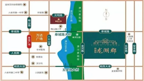 徽鹽龍湖郡是徽鹽地產進入六安市區后的第四個項目,項目東至六安市長安北路,北至皋城路,西臨淠河總干渠,南接城市公園,項目坐擁一線湖岸景觀、雙城市公園,金安路小學和人民小學東校環伺項目,周邊生態環境優美、生活配套完善。
