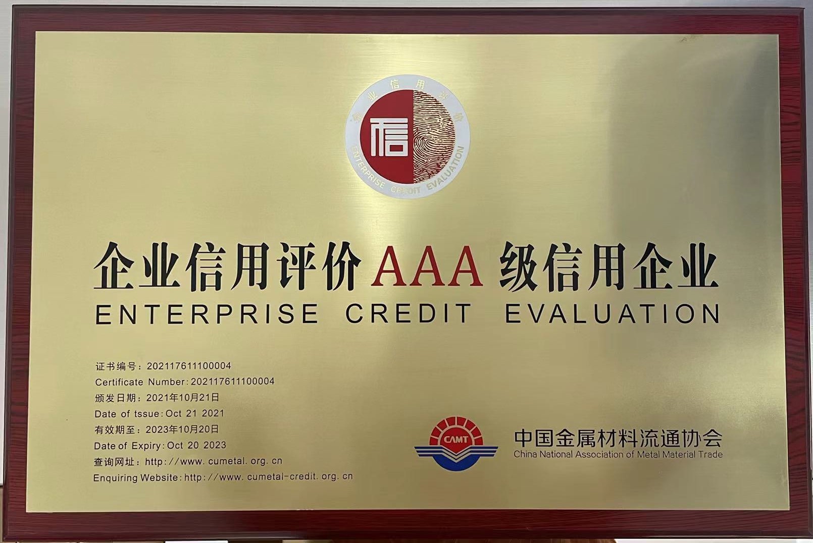 大會權(quán)威發(fā)布了2021年度中國金屬材料行業(yè)AAA級信用企業(yè)名單,安徽順朝公司成功入選,并在會上接受了由主辦方頒發(fā)的企業(yè)信用評級AAA級信用企業(yè)授牌。據(jù)悉,2021年度中國金屬材料行業(yè)AAA級信用企業(yè)全國僅有10家,安徽順朝公司是安徽省唯一入選企業(yè)。